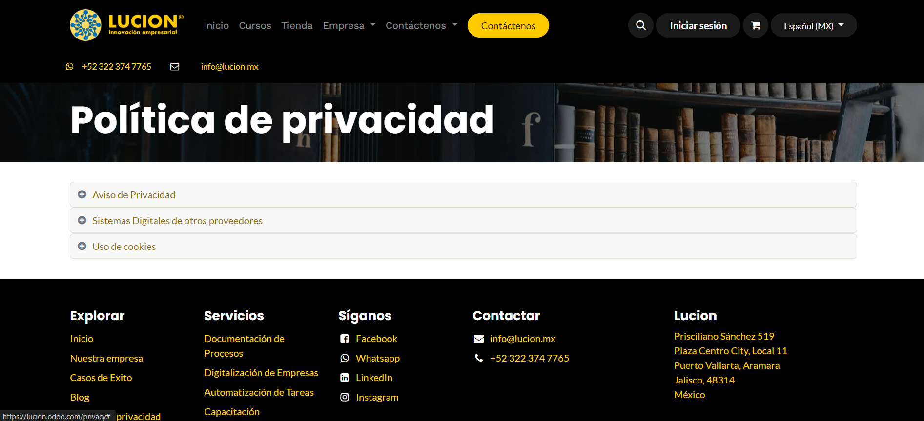 - Información de contacto: Detalles como la dirección física de la empresa, número de teléfono y dirección de correo electrónico que permiten a los visitantes comunicarse de manera más directa si lo desean.